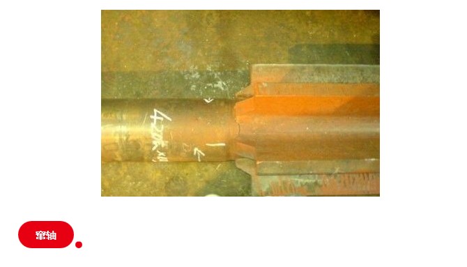 3、幅板軸斷裂。排除安裝因素外,幅板軸常會在幅板焊接位置出現不規則裂紋,大多數電機生產廠家通過退火工藝、并在幅板與主軸連接的兩端,通過加工應力槽的方式解決該類軸的斷軸問題。