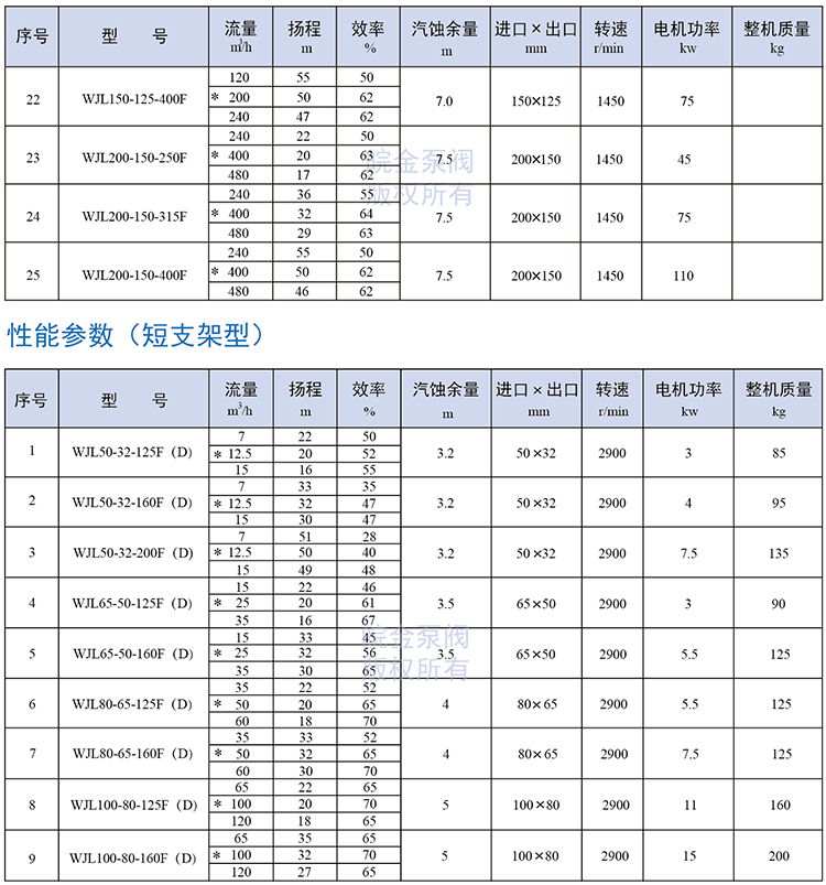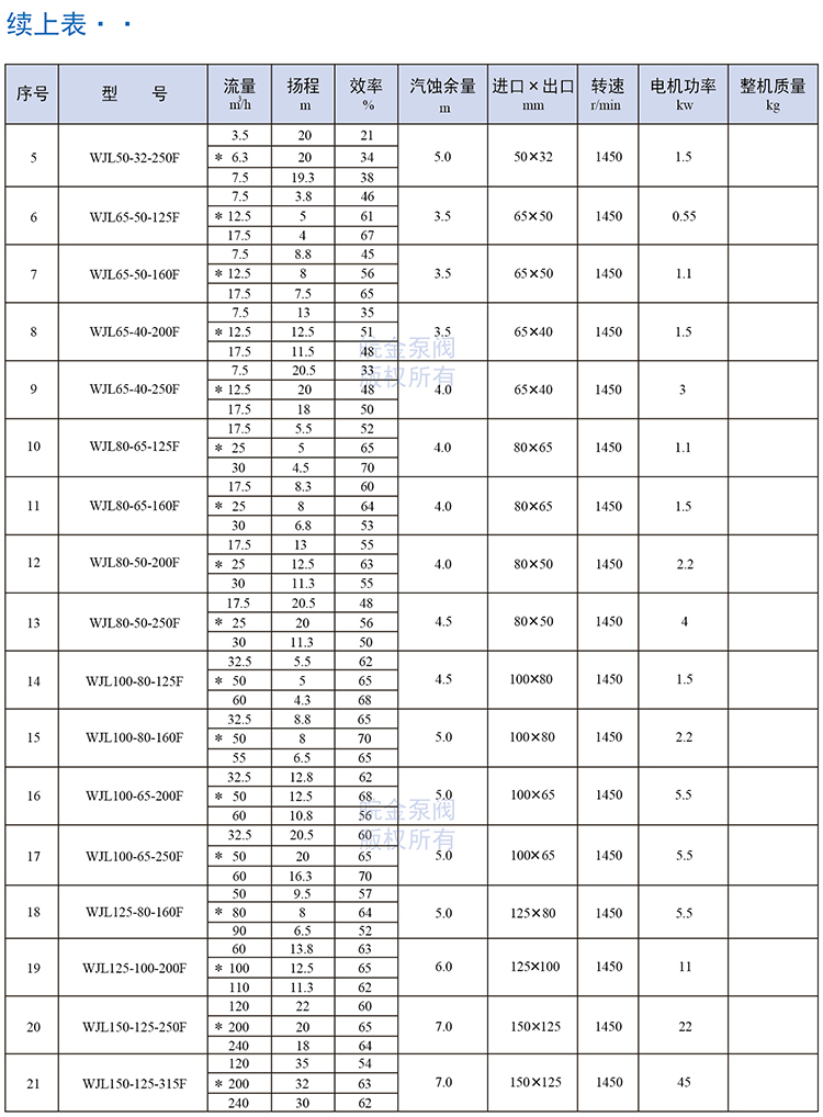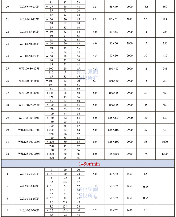 皖金泵閥襯氟離心泵主要參數: