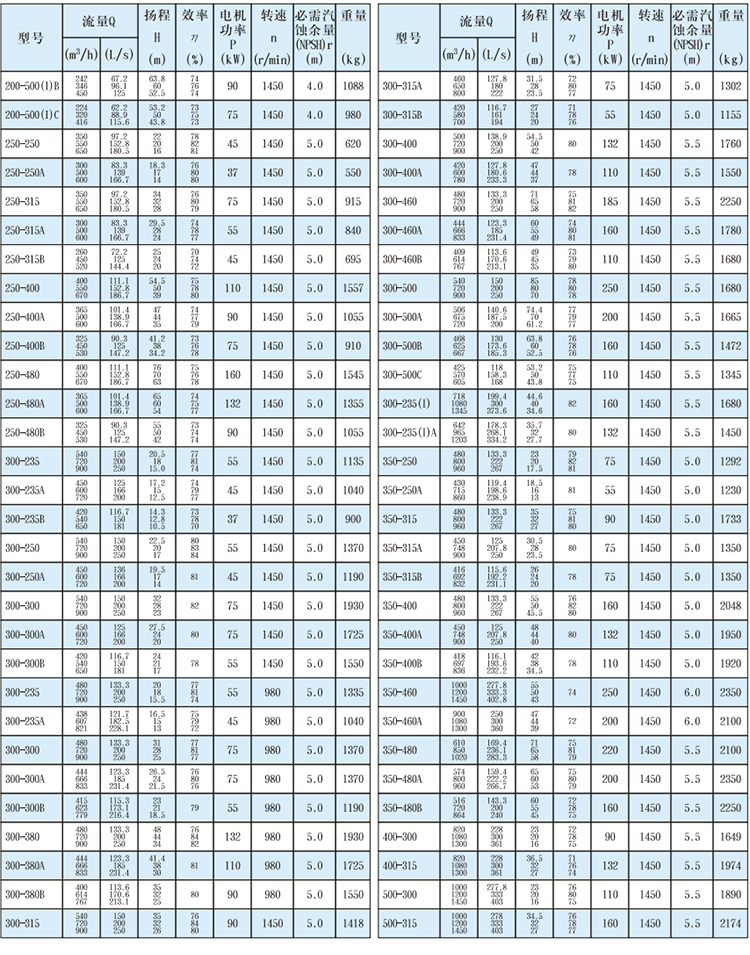 皖金泵閥不銹鋼臥式離心泵主要參數: